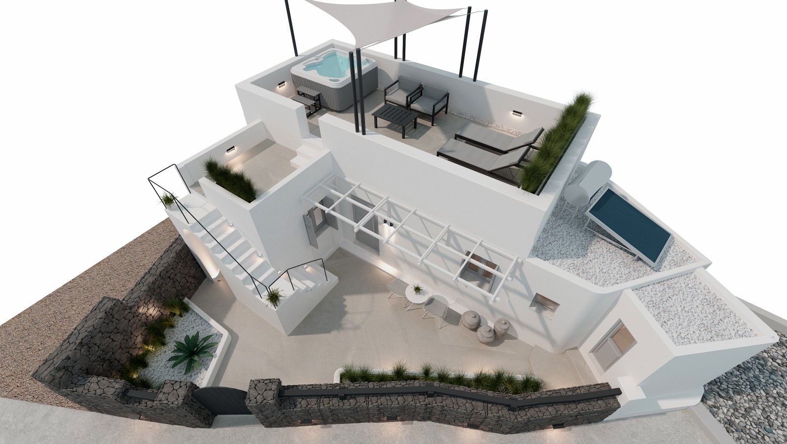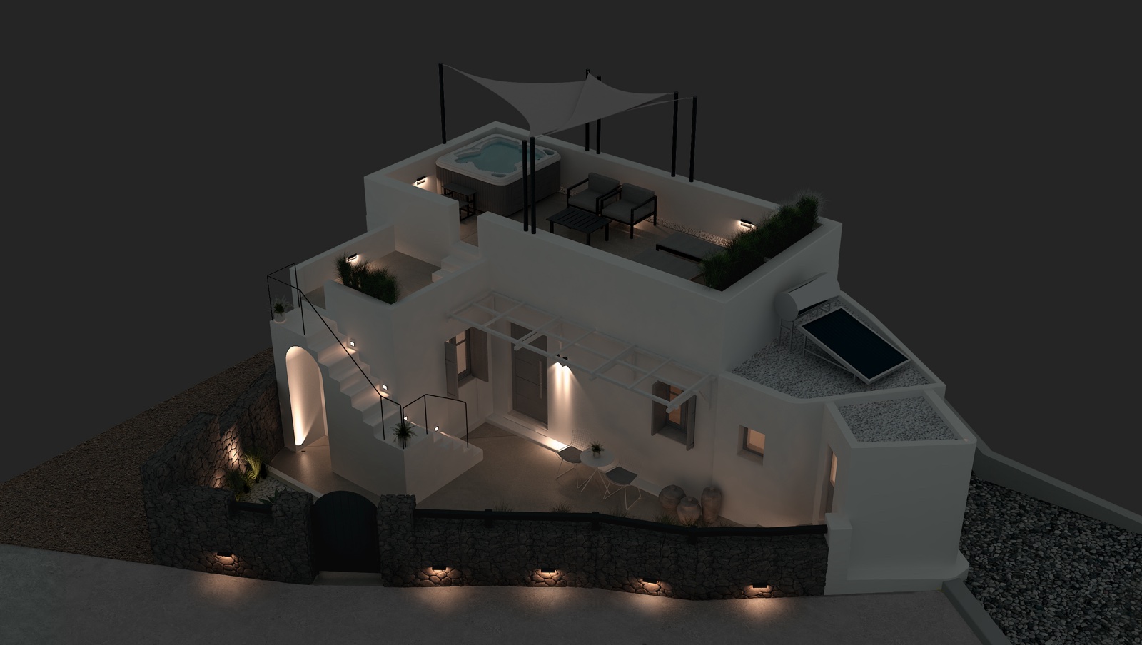 Στόχος του παρόντος project είναι η ανακαίνιση μιας παραδοσιακής κατοικίας στη Σαντορίνη, συνδυάζοντας την τοπική αρχιτεκτονική με σύγχρονες ανέσεις. Η κατοικία βρίσκεται σε μια προνομιούχα τοποθεσία με θέα το Αιγαίο και απαιτεί αναβάθμιση τόσο στους εσωτερικούς όσο και στους εξωτερικούς χώρους.